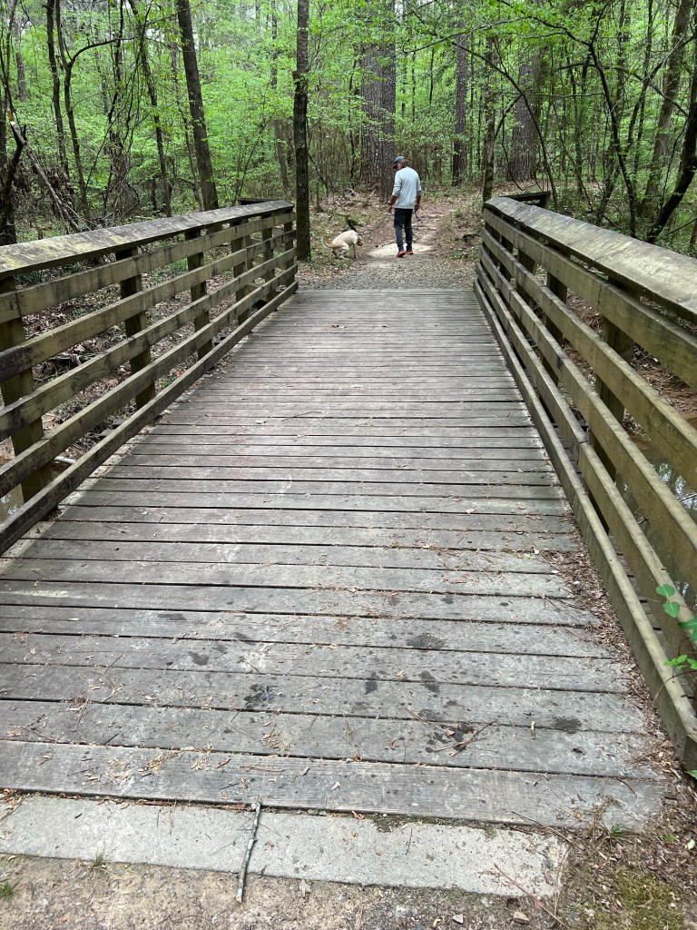 I like hiking so when we camped in Arkansas, the Little Missouri River Trail was in our campsite area. It’s a really nice trail, just over a mile long, partly paved with benches along the way. When we were there it was very lush and green with the trees forming a canopy that made you feel as if you were in another world entirely.