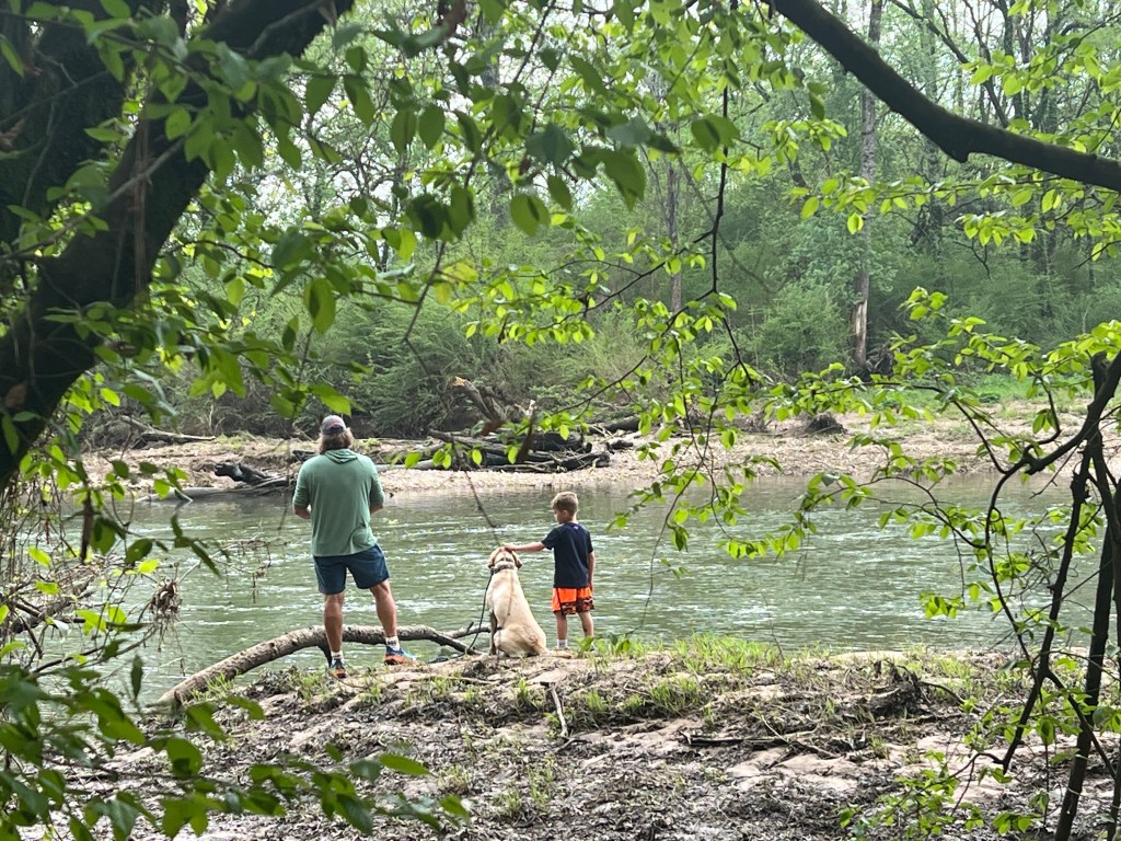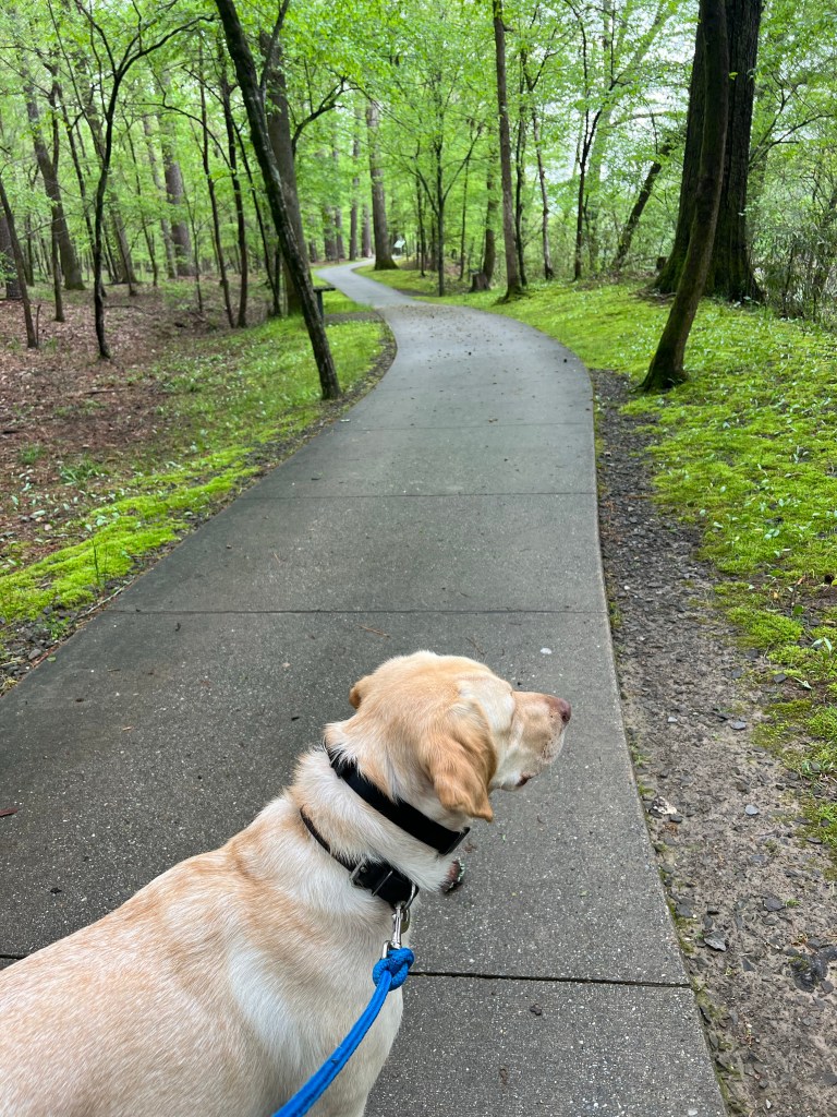 Some of the guys walked down to the river to try their hand at fishing. No fish were caught but Lucy jumped in the moving river and that was quite adventurous as they had to coax her into swimming back to shore. Another day I decided to walk Lucy alone and I don’t usually do that because she weighs seventy-four pounds and has been known to drag me into things causing bodily harm…think Marmaduke. Anyway, that day we set out and she was actually doing quite well. I didn’t see anyone else on the trail so they were no other dogs to distract her. Suddenly a squirrel ran across the path just beyond us and we were on the run as she proceeded to drag me down the trail and through the woods. Whenever I caught my breath I immediately short leashed and reprimanded her and assessed the damage. Only one broken nail on my freshly manicured hand. Whew! What an adventure.